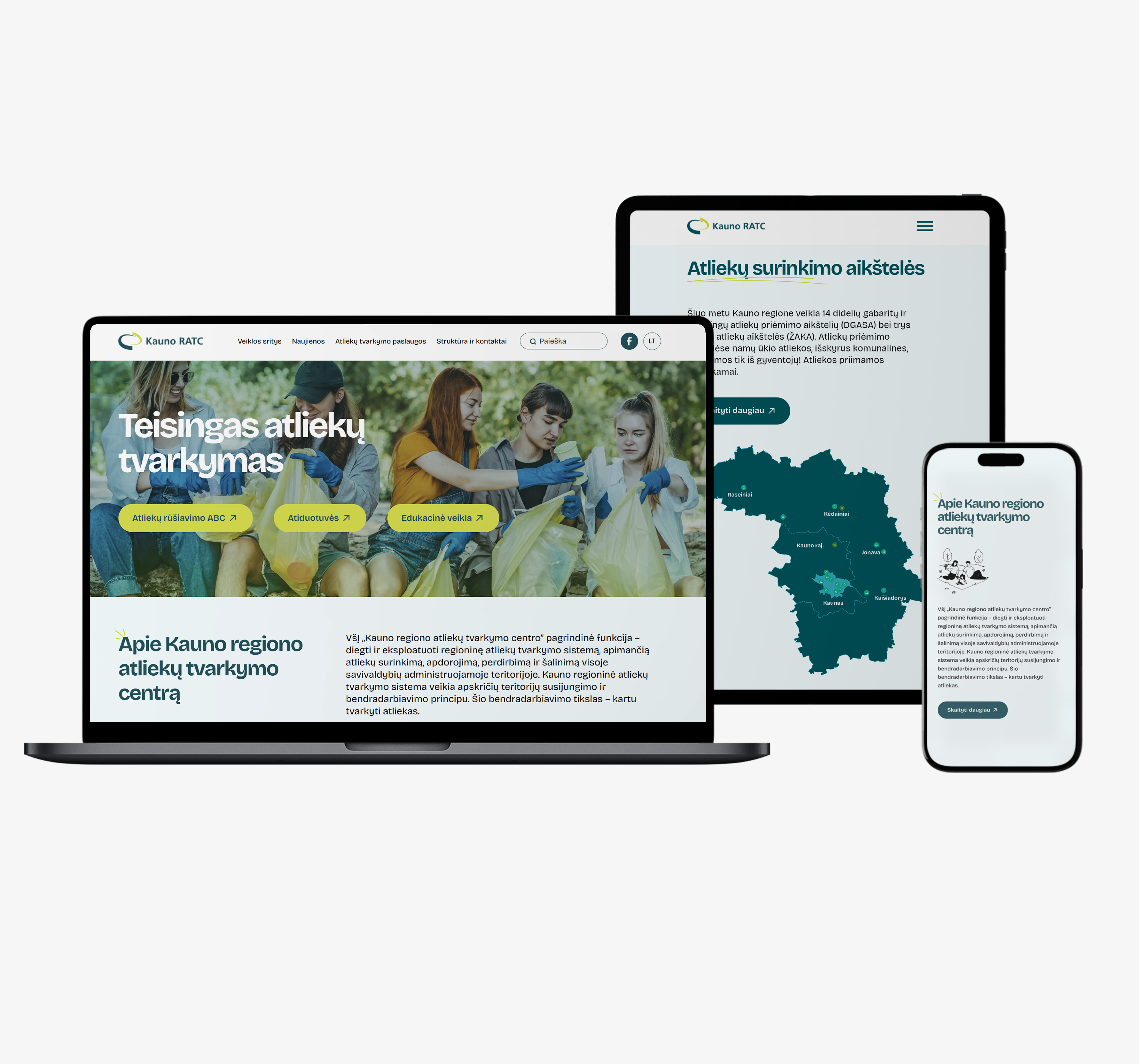 „Kauno RATC“ – Kauno regiono atliekų tvarkymo sistema. Tikslas – sukurti naują svetainės dizainą su programavimo sprendimais, pritaikytą visiems vartotojo poreikiams.