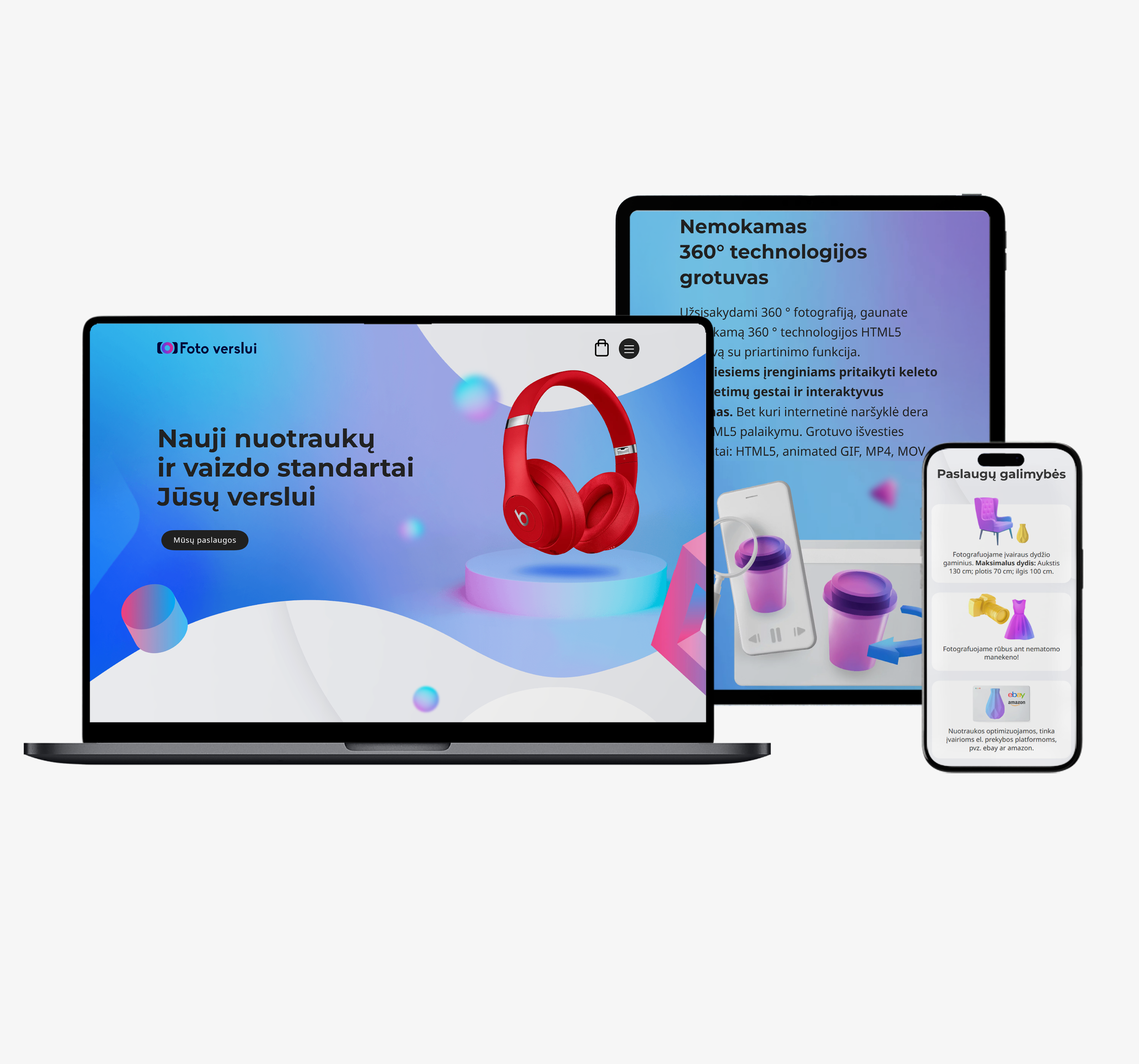 „Foto verslui“ – fotografijos paslaugas elektroniniams verslams teikianti įmonė. Tikslas – pagal kliento poreikius ir lūkesčius sukurti logotipą ir interneto svetainės unikalų dizainą, pritaikytą ir mobiliai versijai.