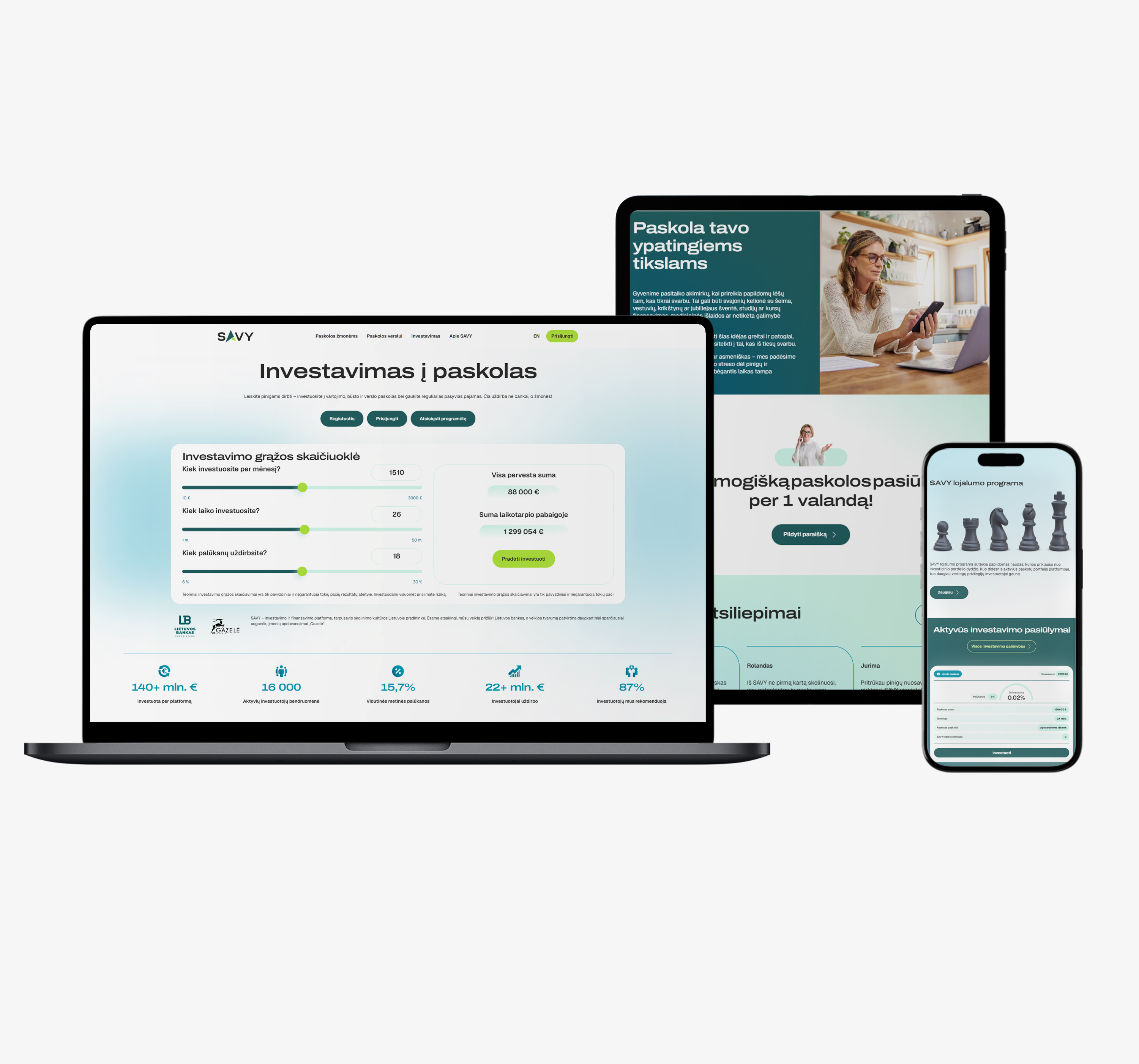 Ačiū visai Adface komandai už naujos SAVY svetainės dizaino, patogios navigacijos sprendimus ir techninį įgyvendinimą. Viso projekto metu jautėme komandos dedamas pastangas ir širdį. Šiandien džiaugiamės ir didžiuojamės patogesne ir gražesne svetaine paskolų gavėjams ir investuotojams.