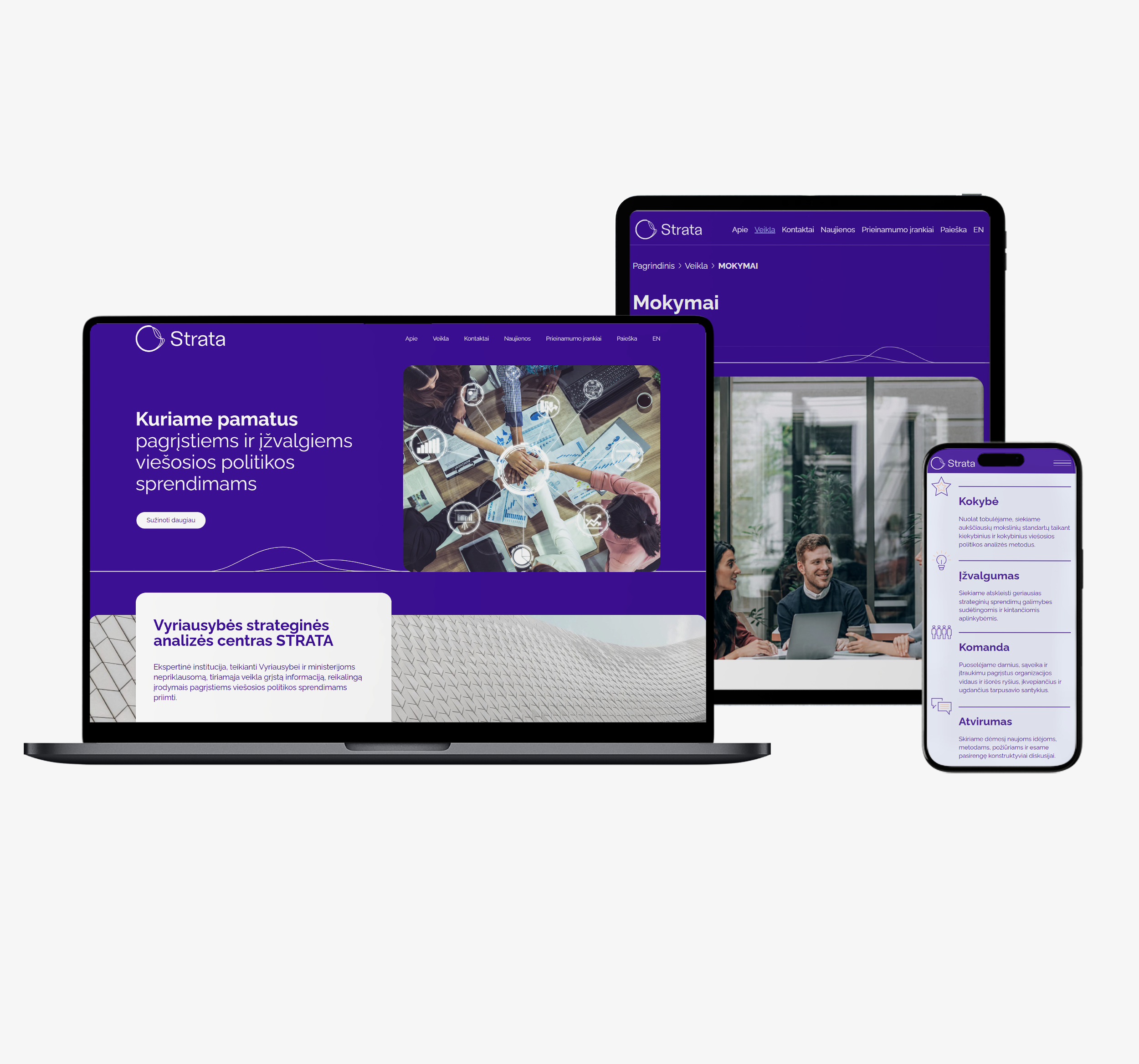 „Strata” – ekspertinė institucija, teikianti Vyriausybei ir ministerijoms nepriklausomą, tiriamąja veikla grįstą informaciją, reikalingą įrodymais pagrįstiems viešosios politikos sprendimams priimti. Tikslas – parengti reprezentacinio pobūdžio interneto svetainę.